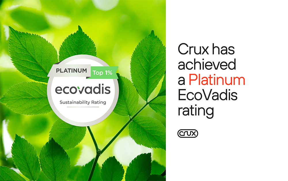Crux has achieved a Platinum rating from EcoVadis, a distinction reserved for the top 1% of companies assessed worldwide.